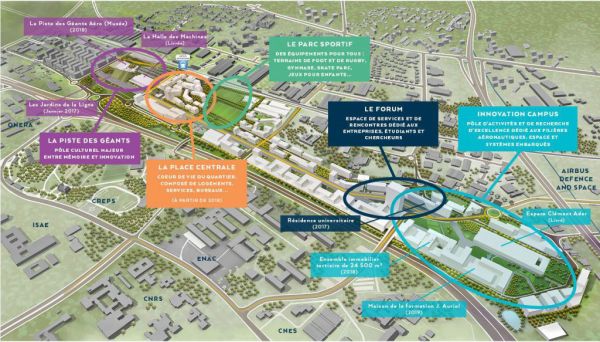 Le quartier Toulouse Aerospace tire son histoire de l’emblématique Piste de l’Aéropostale. Historiquement dédiée à la connectivité humaine, l'aéropostale est aujourd’hui remplacée par les médias numériques et les réseaux sociaux.